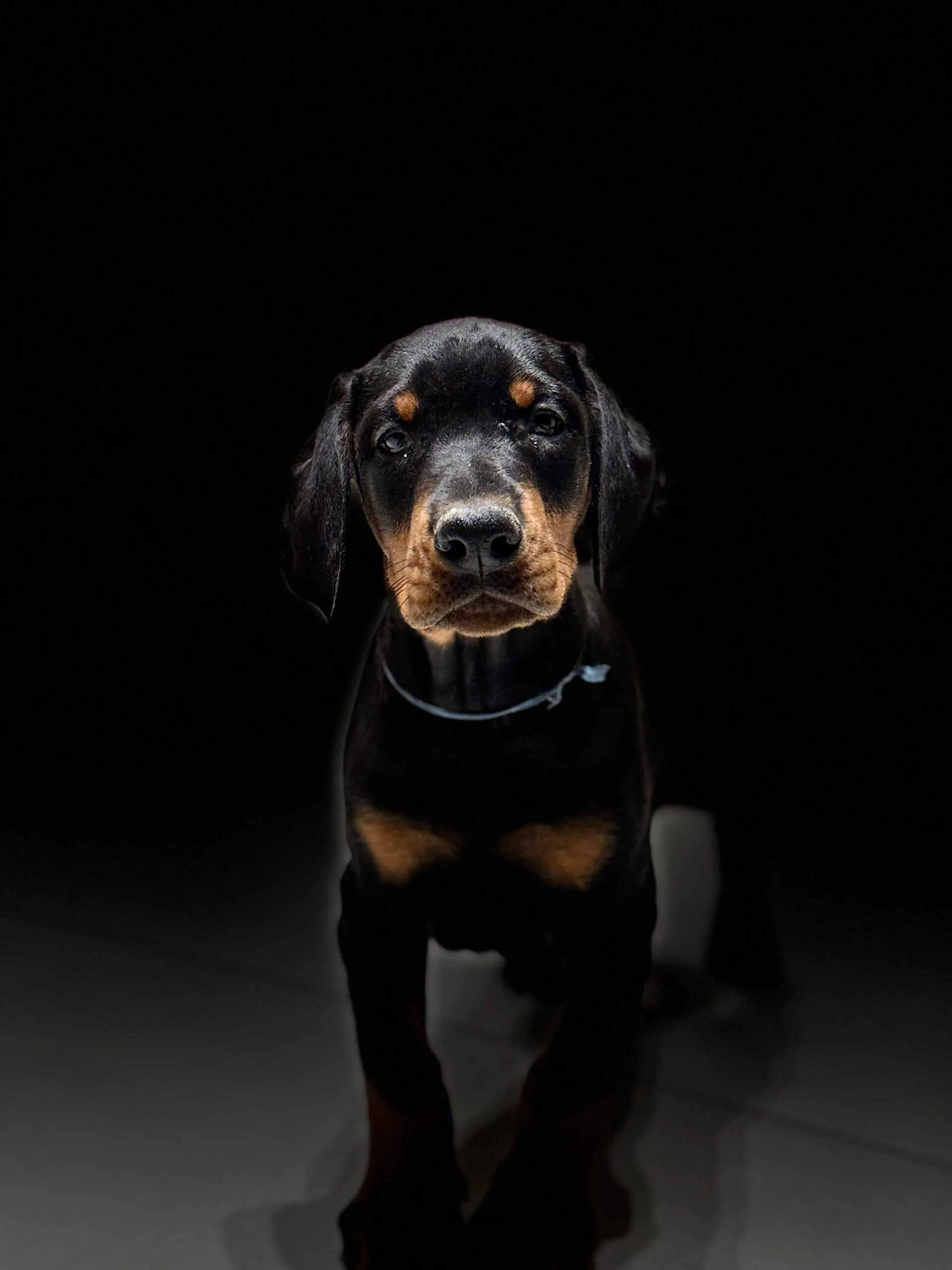 Czarny doberman wyróżnia się nie tylko wyglądem, ale także charakterem — jest pewny siebie, niezwykle czujny oraz lojalny wobec opiekuna. Idealnie odnajduje się zarówno w aktywnym życiu rodzinnym, jak i w szkoleniach posłuszeństwa lub sportach kynologicznych. Jego szlachetna postura i intensywny kolor sprawiają, że często wykorzystywany jest w materiałach reklamowych jako symbol elegancji i dyscypliny.