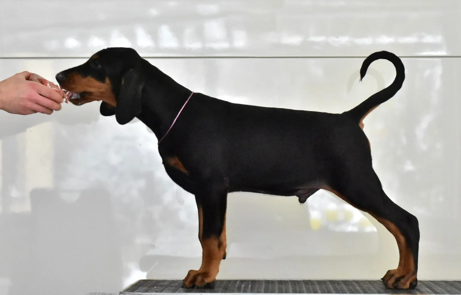 Umaszczenie: czarne lub czekoladowe z kasztanowym podpalaniem. Sierść jest krótka, przylegająca, łatwa w pielęgnacji.