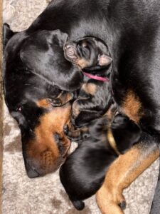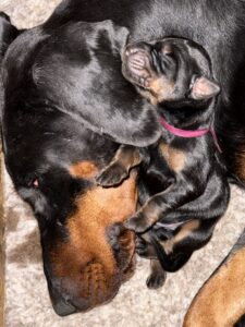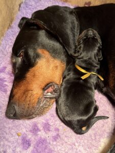 Każde szczenię, które opuszcza moją hodowlę, jest starannie kontrolowane przez weterynarzy. Dbamy o ich zdrowie już od pierwszych dni życia, zapewniając im niezbędną opiekę weterynaryjną, odpowiednią dietę i regularne szczepienia. Jako hodowca kładę duży nacisk na odpowiednią socjalizację, aby maluchy były gotowe do życia w nowych rodzinach i potrafiły odnaleźć się w różnych warunkach. Doberman szczenięta potrzebują dużej ilości ruchu, ale także stymulacji umysłowej, dlatego też od początku staramy się zapewnić im odpowiednią dawkę aktywności.